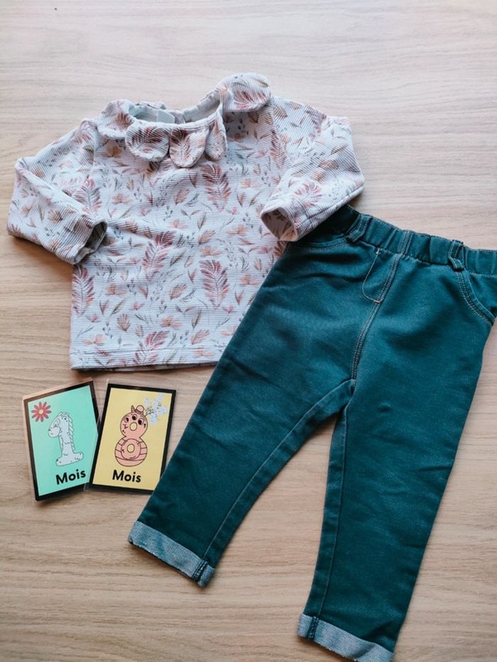 Ensemble legging jeans taille 18 mois Kiabi Et blouse côtelée de la créatrice jolielou fait sur mesure Thème bohème champêtre Excellent état #lipamona18mois