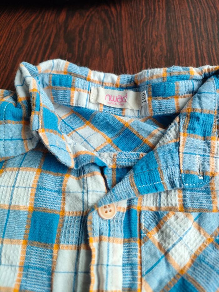 Chemise à carreaux bleu et orange Très bon état. Taille 100 Nwad #lipamonagarçon