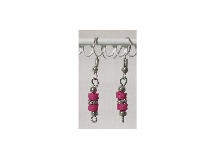 Boucles d’oreilles. Boucles d’oreilles avec perles argentées, perles plates roses et strass. Diamètre perles argentées : 3 mm Diamètre perles plates et strass : 5 mm Longueur totale : 4,00 cm Longueur hors crochet : 2,2 cm En très bon état. Fait main. 2€. #vero38110bijoux