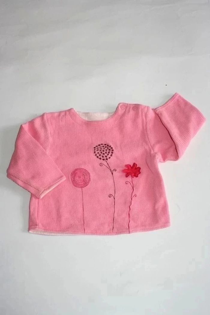 Sweat rose doublé avec pressions sur le côté du col, de chez Marèse taille 12 mois, 150g