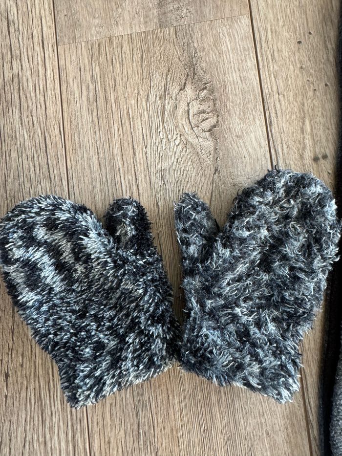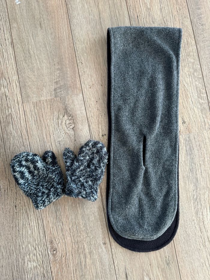 Lot une paire de moufles et écharpe 3 ans en molleton gris avec et noir BU