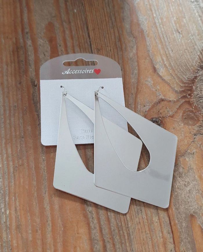 Grosses boucles d'oreilles pendantes argentées miroir neuves