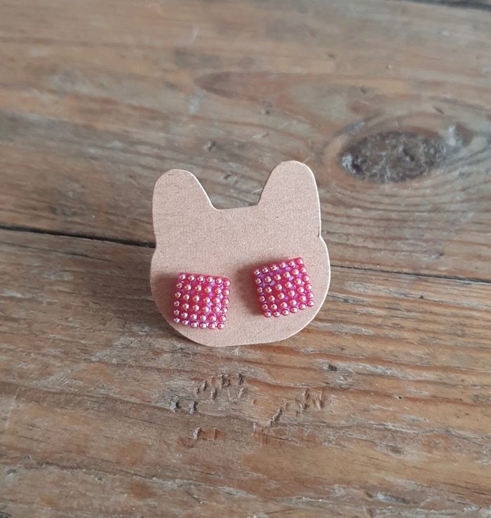 Boucles d'oreilles neuves rouges carrées diamants brillants