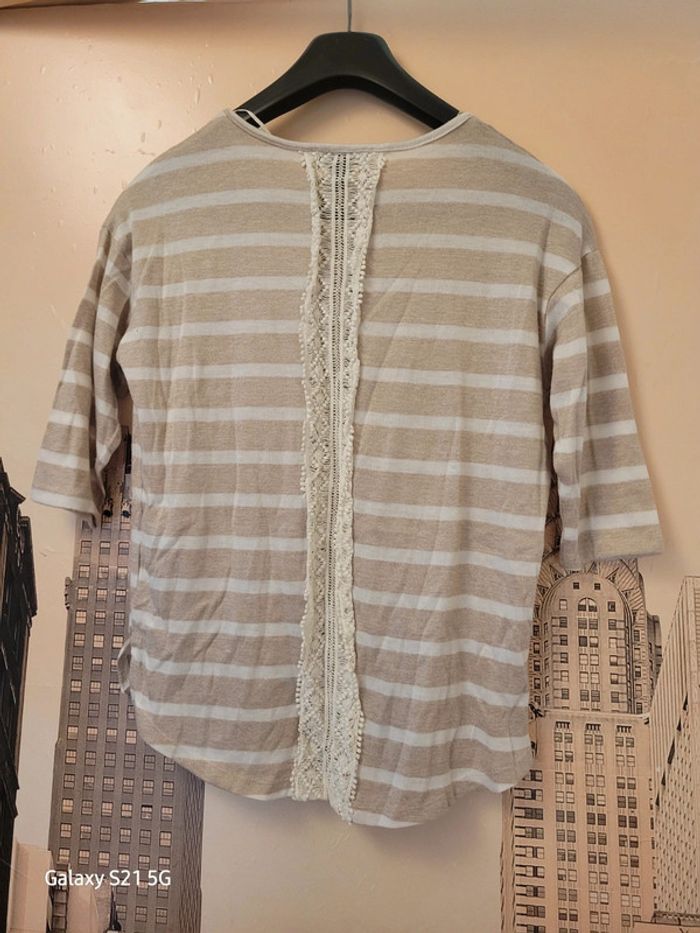 T-shirt ocre et crème Manches mi longues Taille 36 Très bon état