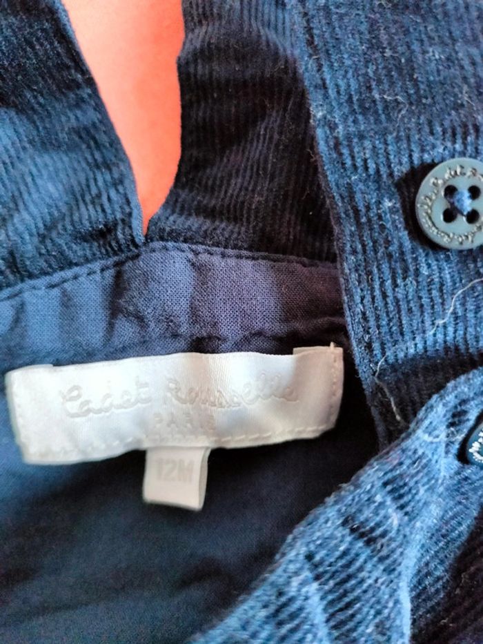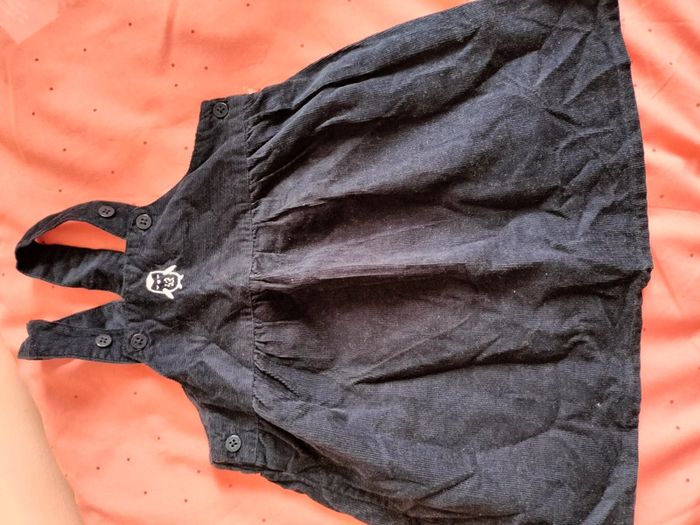 Robe salopette bleu marine en velours côtelé 12 mois. En très bon état.