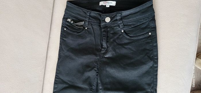 Pantalon slim de couleur noir Effet ciré Neuf, jamais porté, protection bouton encore présente