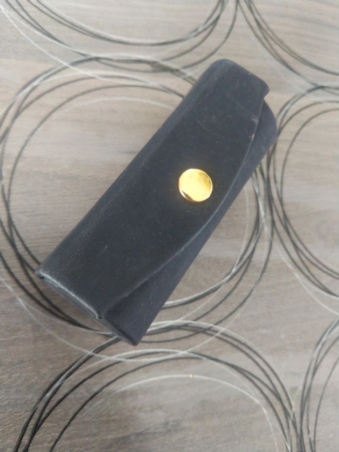 Étui pour rouge à lèvres Les Terianes avec miroir intégré en très bon état En cuir mat noir 8,5x3 cm