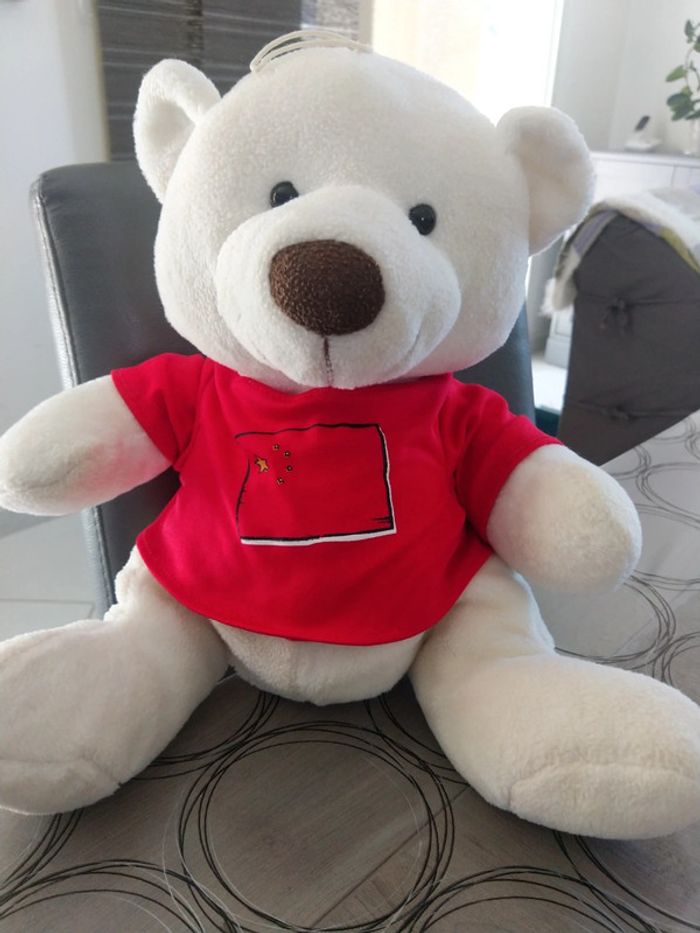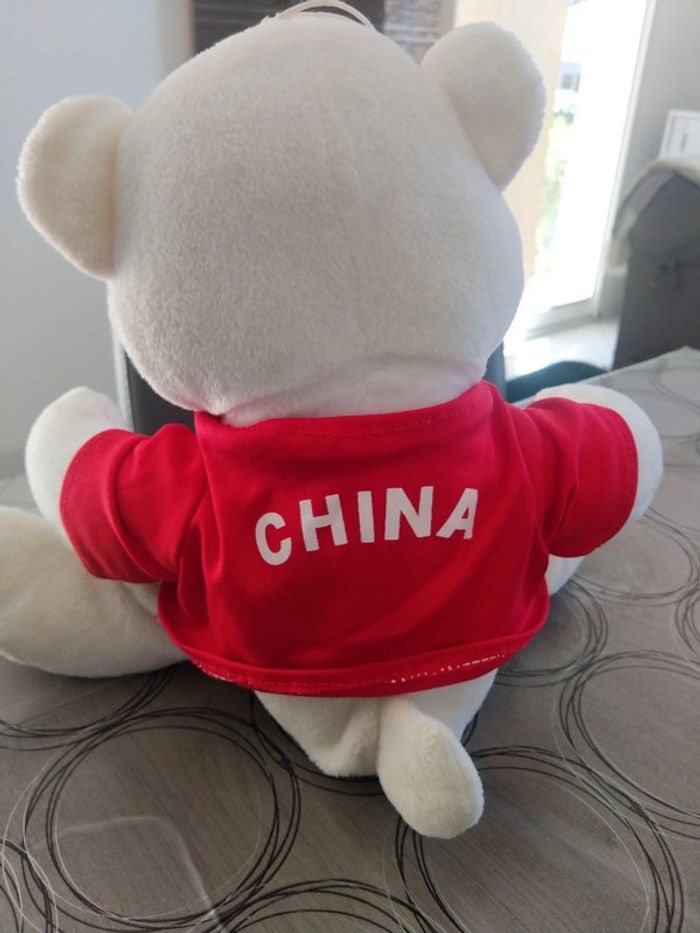 Peluche ours blanc complètement neuve avec tee shirt de la Chine Environ 35 cm