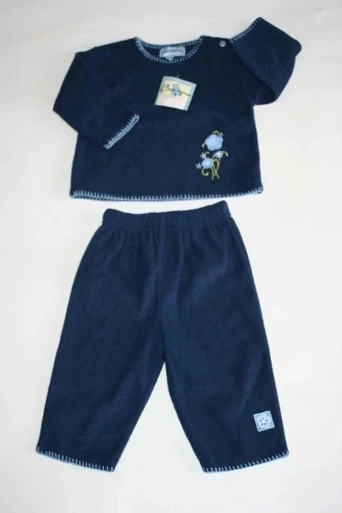 Ensemble polaire bleu marine marque Chocolatine, neuf étiqueté, composé d'un sweat avec boutons sur le côté du col + pantalon taille élastique, taille 12 mois, 200g