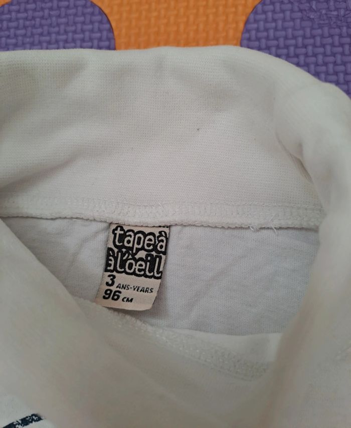 ↪️  #tshirt col roulé à manches longues de couleur #blanc ✅ de la marque #tapealoeil 📏 en taille 3 ans ( 96 Cm) ➡️ en très bon état 🧶 Se compose de #coton ⚠️🏷️💲RÉDUCTIONS SUR LOTS 💲🏷️⚠️ 🎁 Profitez de #réductions si vous achetez en #lots : 🤑 2️⃣ ARTICLES = 1️⃣0️⃣ % 🤑 🤑 3️⃣ ARTICLES = 2️⃣0️⃣ % 🤑 🤑 5️⃣ ARTICLES = 3️⃣0️⃣ % 🤑 #flocaro66_3ans