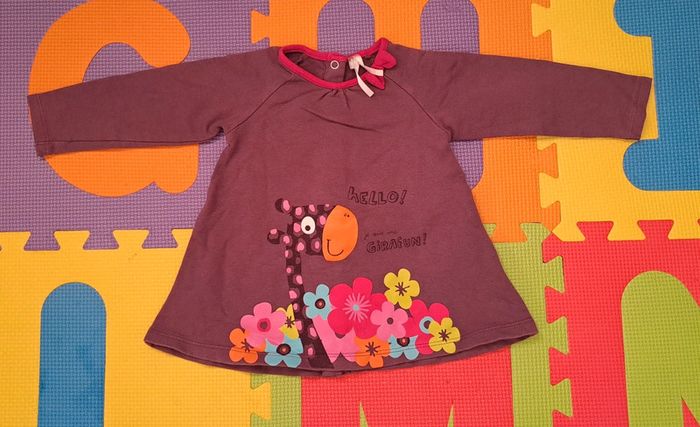 T-shirt manches longues violet girafe fleurs, orchestra, taille 6 mois (67 cm) - photo numéro 1