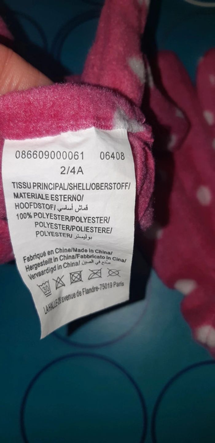 Gants fille polaires 2 - 4 ans roses à pois - photo numéro 2