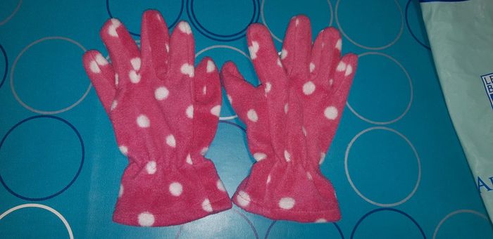 Gants fille polaires 2 - 4 ans roses à pois - photo numéro 1