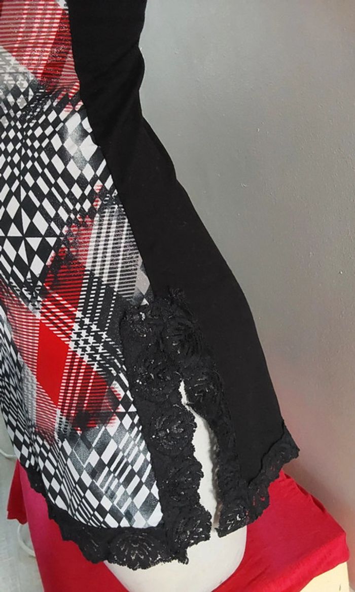 🌸Tissu satin irisé rouge, noir et blanc devant
