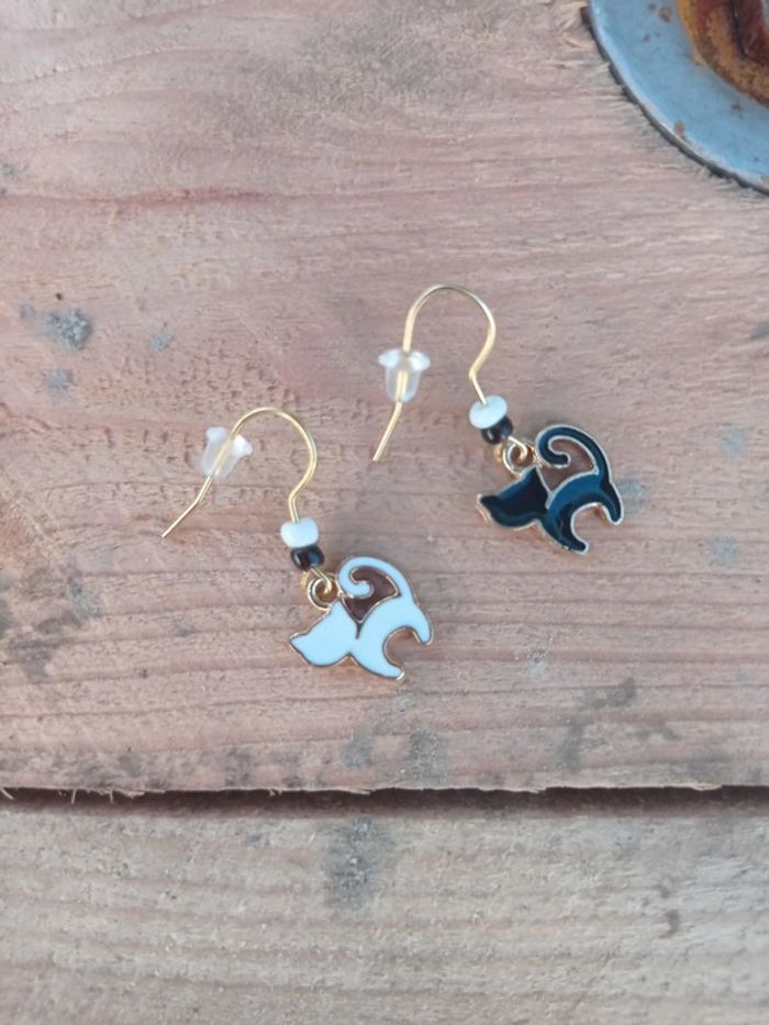 Boucles d'oreilles chat noir et blanc
