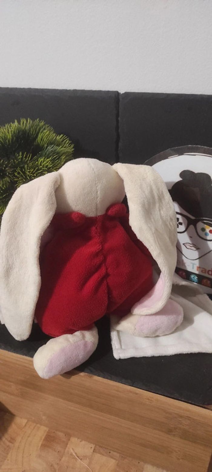 peluche doudou lapin mouchoir rouge rose blanc fleur baby nat - photo numéro 2