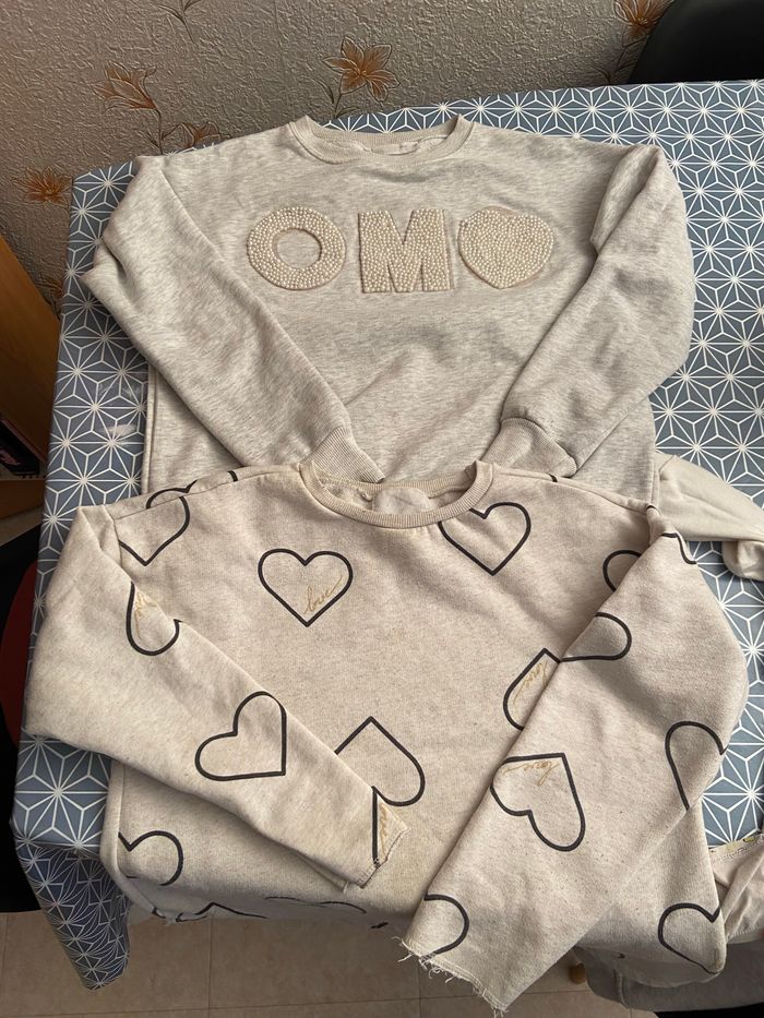 13/14 ans Je vends 3 euros le sweat à perle en bon état Je donne celui avec les cœurs de chez Zara aussi