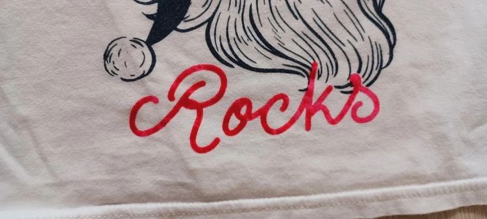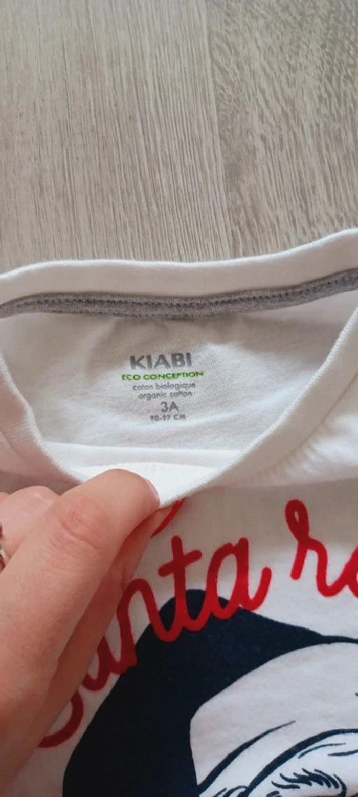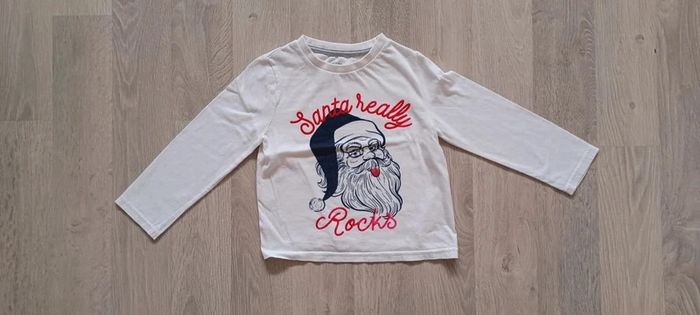 Tee-shirt manches longues garçon Kiabi, motif père Noël, taille 3 ans, en bon état (voir dernière photo, juste le relief qui part sur le mot "rocks"). #Smiiile93_garcontaille3ans #bébé #garçon #garcon3ans #kiabi #Noël #perenoel #teeshirtperenoel #vintedgift
