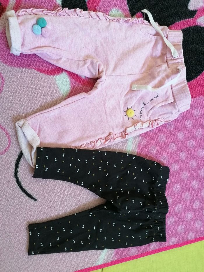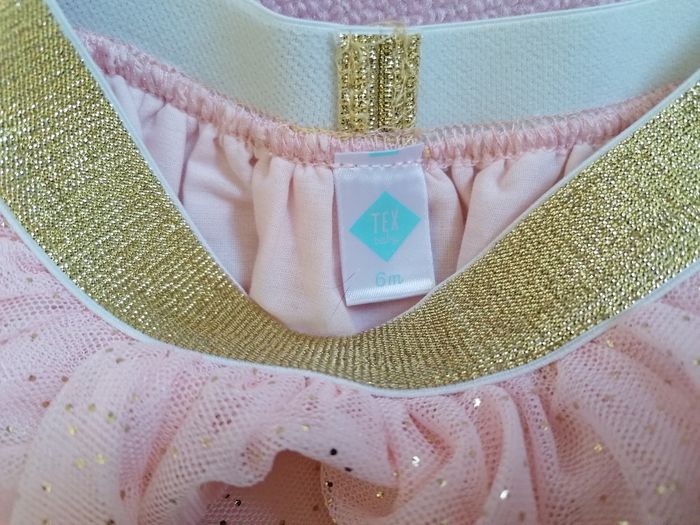 3 sweats et 3 pantalons, une jupe en jean et un tutu. très bon état. Taille 6 mois.