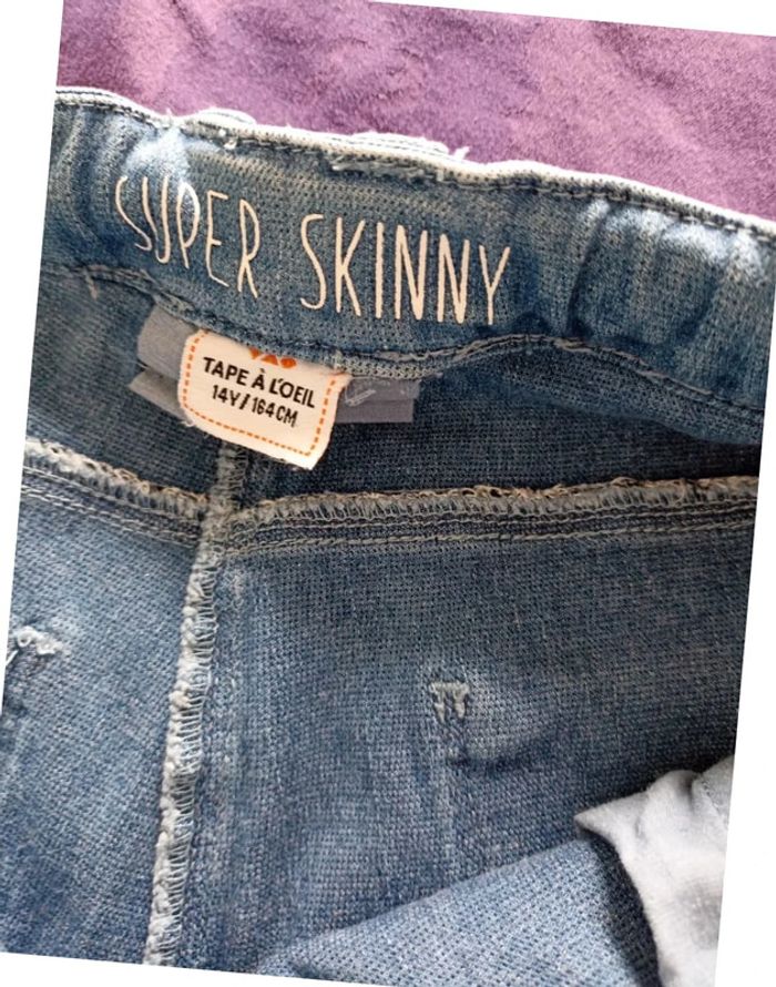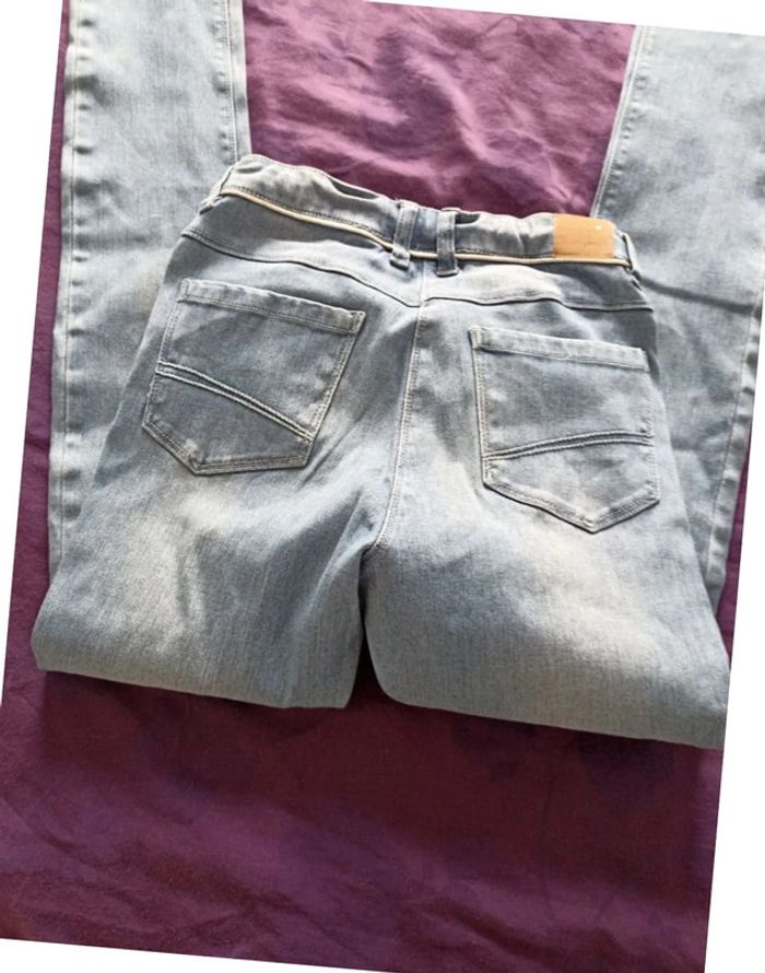 Très joli jean 14 ans ou 164 cm, taille resserrable. Longueur de la jambe : 95 cm Un p'tit accroc sur le genou gauche ( voir les 2 dernières photos), d'où le petit prix. Retrouvez d'autres annonces en cliquant sur #14ansmadie57 Pensez à enlever les filtres !