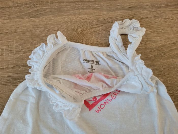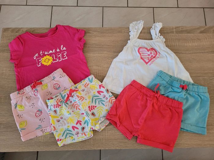 Vend lot d'ensembles fille taille 12 mois en très bon état comprenant un tee-shirt manches courtes Pat et Ripaton, un débardeur et 4 shorts Orchestra.