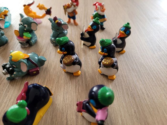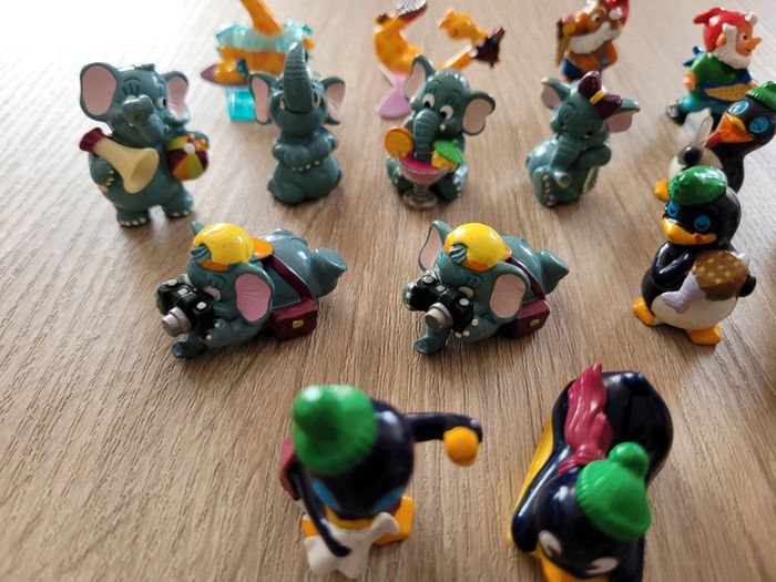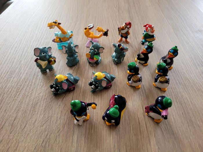Vend lot de 17 figurines de jouets kinder surprise en bon état. Lot comprenant 2 girafes, 2 nains de jardin, 6 éléphants et 7 pingouins. Vendu tel que sur la publication.