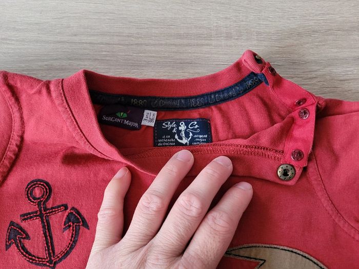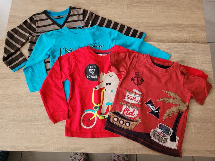 Vend lot de 4 tee-shirts manches longues dont un manches courtes garçon taille 3 ans en très bon état et bon état juste le rouge avec une petite tâche (voir photos).