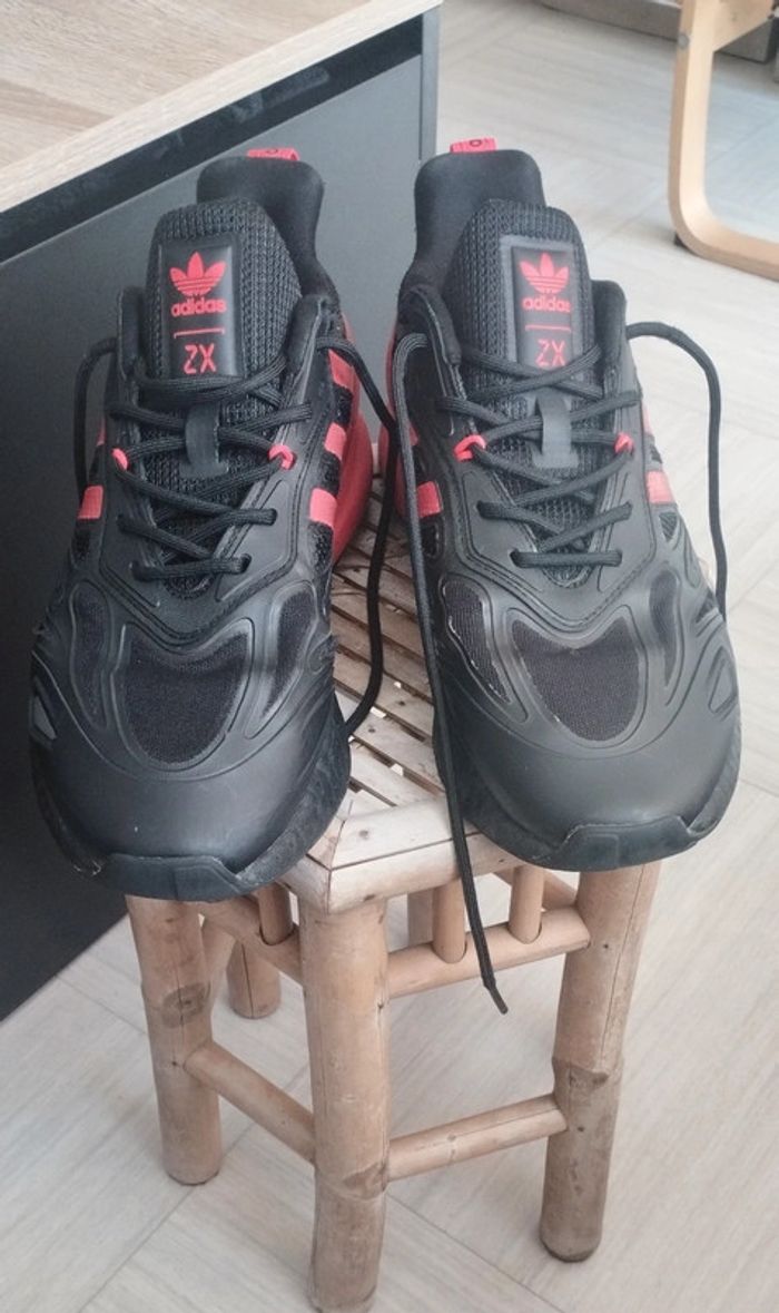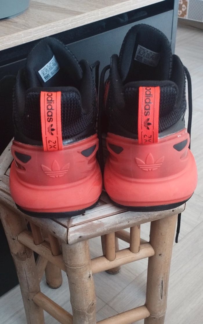 Baskets Adidas ZX de couleur noir et orange. Taille 41-1/3 En très bon état général 👌 Seul défaut, 2 petites déchirures superficielles, au pied droit (le tissu d'en dessous n'est pas déchiré). Elles ont été lavées, donc prêtes à l'emploi 👌
