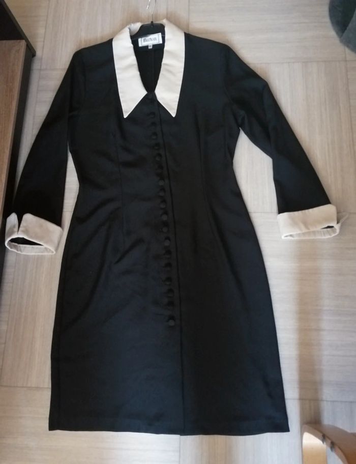 Jolie robe vintage de la marque Burton. Noire et blanc crème. Indiqué taille 40 mais taille petit donc plutôt un 38 (M) Voir mesures sur les photos. N'hésitez pas à me demander si besoin de plus de mesures. Intérieur tout satiné. Fines épaulettes aux épaules. Tous les boutons s'ouvrent, donc idéal pour l'enfiler facilement 👌 Elle est en excellent état 👌 #vintage #chic