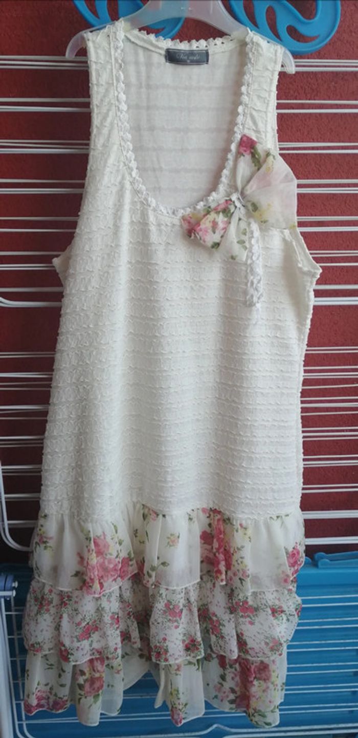 Très jolie robe blanche et à fleurs. Elle est toute neuve, jamais portée👌 Acheter pour une occasion qui a été annulée... Taille M 90 cm de longueur totale. 100 % polyester. #champêtre #bohême #mariage #baptême #fleurs
