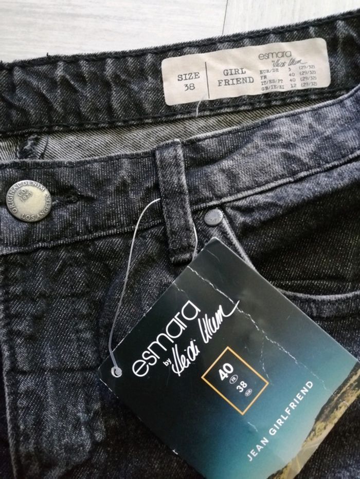 Jeans noir. Écrit taille 40 mais taille très petit donc c'est un petit 38. Neuf avec étiquette donc jamais porté. 100%coton