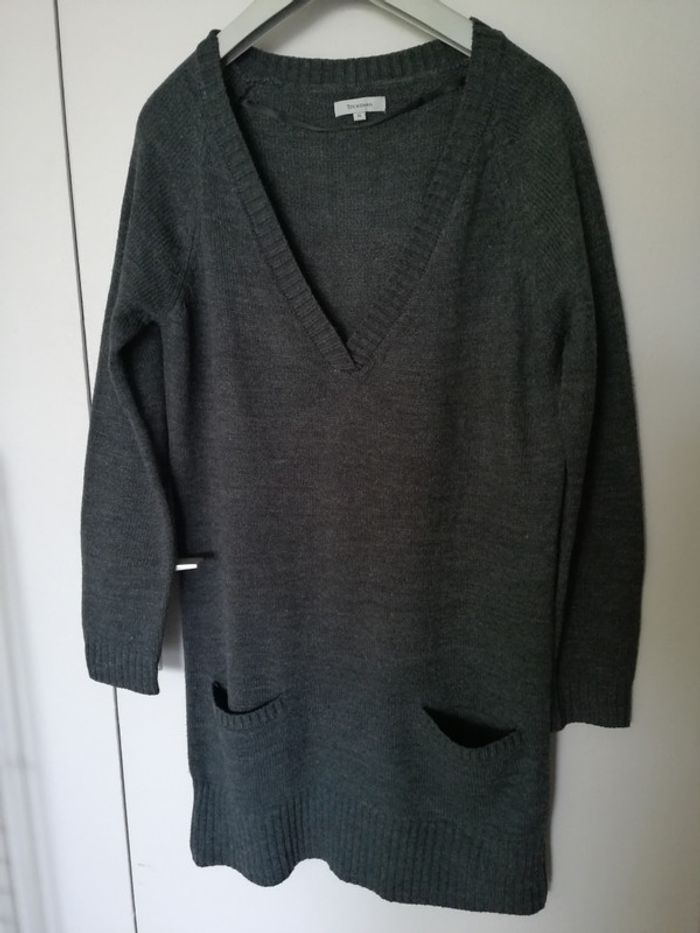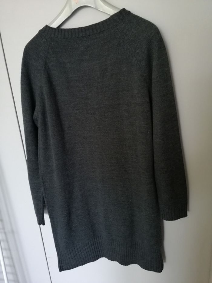 Robe oversize ou maxi pull Longueur environ 85 cm Largeur environ 48 cm Marqué taille M, mais tellement large que correspond plutôt à un bon taille L/XL je pense... Couleur gris foncé Excellent état