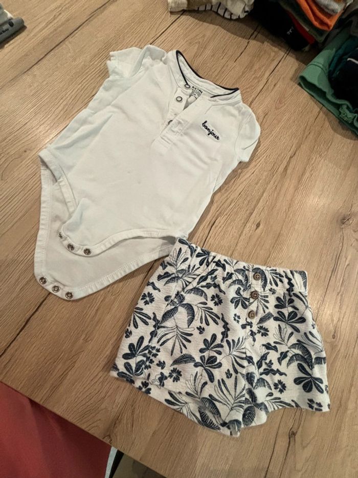 Kiabi très bon état Bodies et short blanc et bleu 6mois, 68cm #alisons16_bbgarcon68