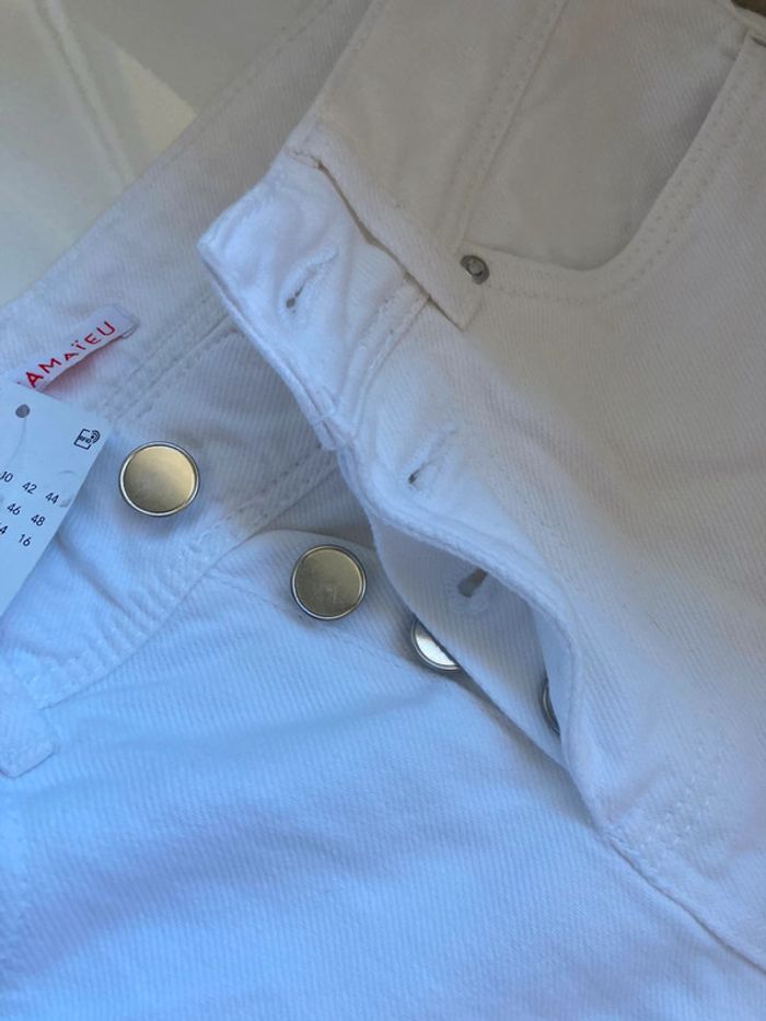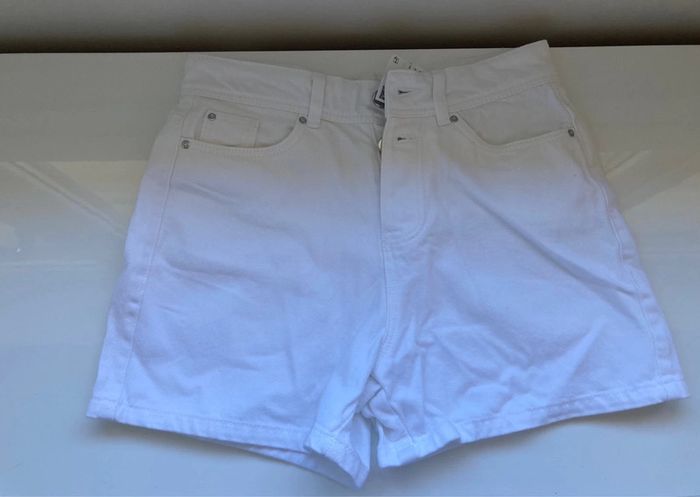 Neuf avec étiquette. Acheté l’an dernier mais malheureusement trop petit pour moi. Short en jean blanc taille haute. Camaïeu taille 34 Prix neuf : 20€.