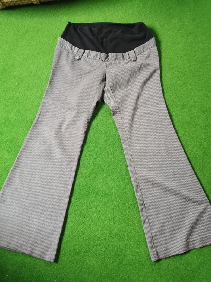 Pantalon femme enceinte gris à rayures fines - photo numéro 1