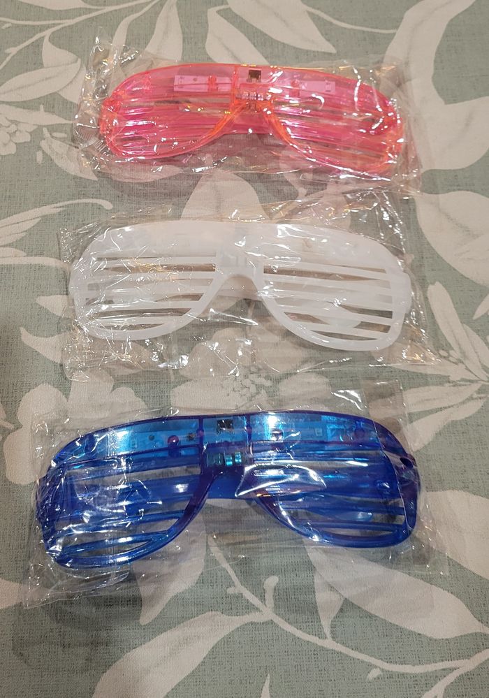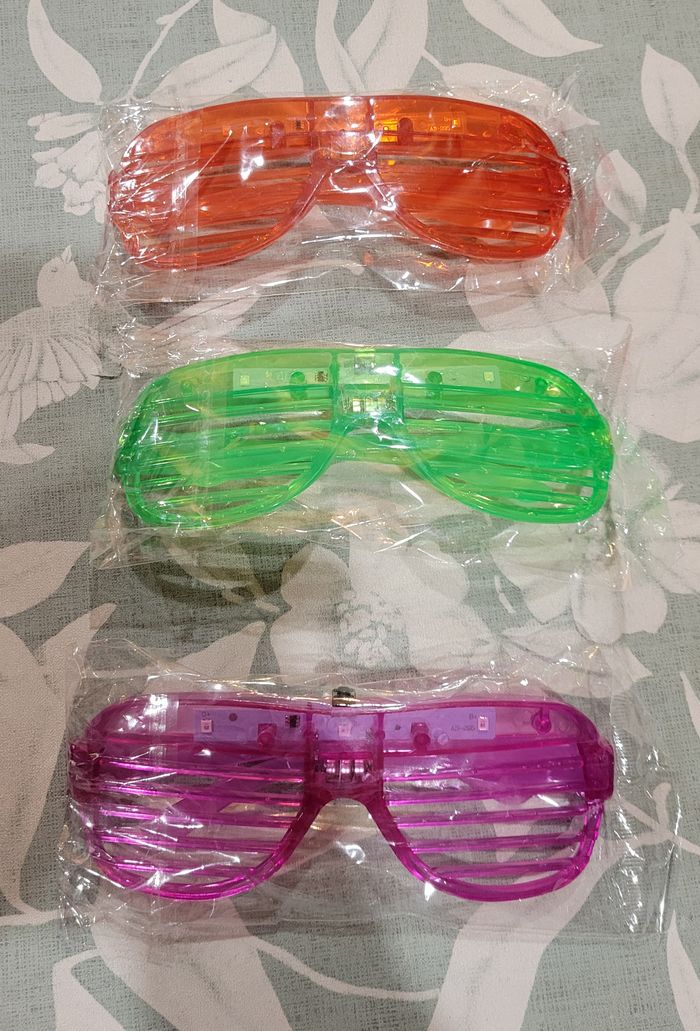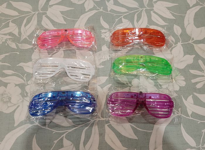 lot de 6 paires de lunettes LED. plusieurs modes de clignotements (comme une guirlande). Les 6 paires fonctionnent parfaitement Ideale pour une soirée fete. NEUF SOUS BLISTER ! Envoi rapide et soigné par MONDIAL RELAIS ou COLISSIMO.
