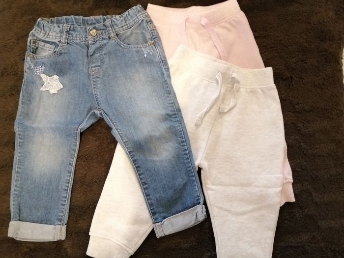 Lot de 8 pantalons fille 12 mois (leggings, bas de survêtement, jeans) . La photo 2 est en taille 12/18mois. Différentes marques, kiabi, verbaudet, zara baby, primark....