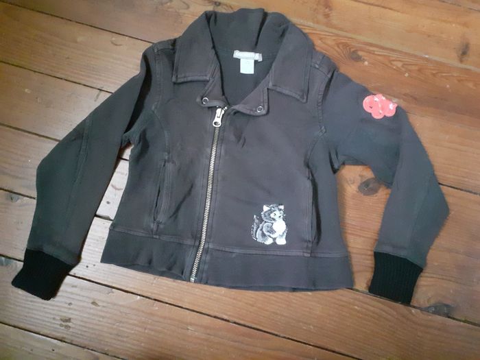 Veste grise foncée motif chat et papillon 6 ans