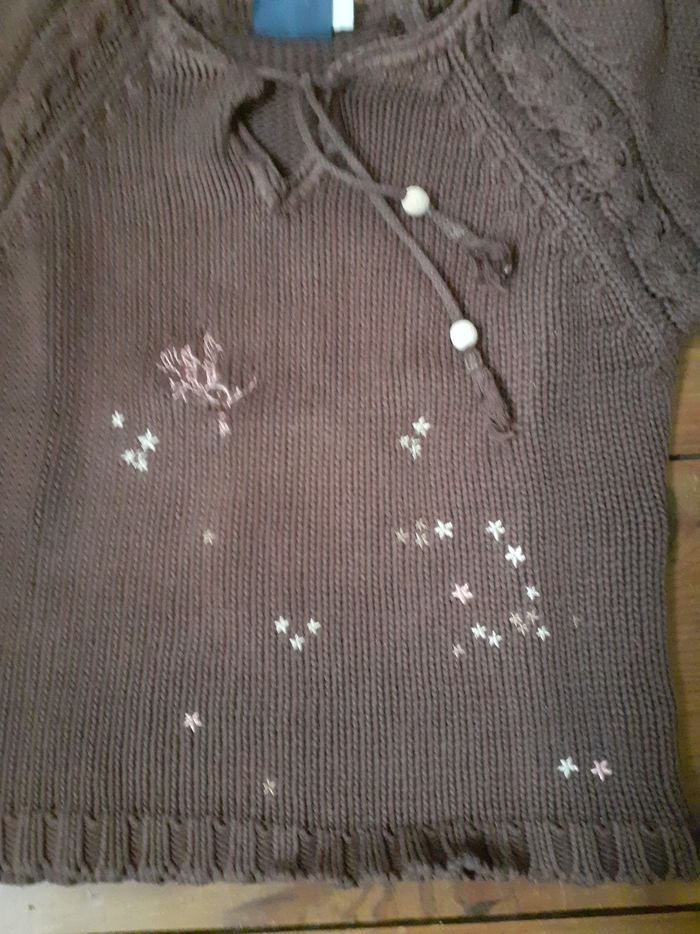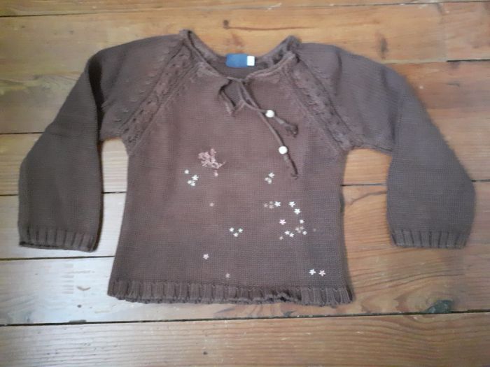 Pull marron motif petites fleurs blanches 6 ans