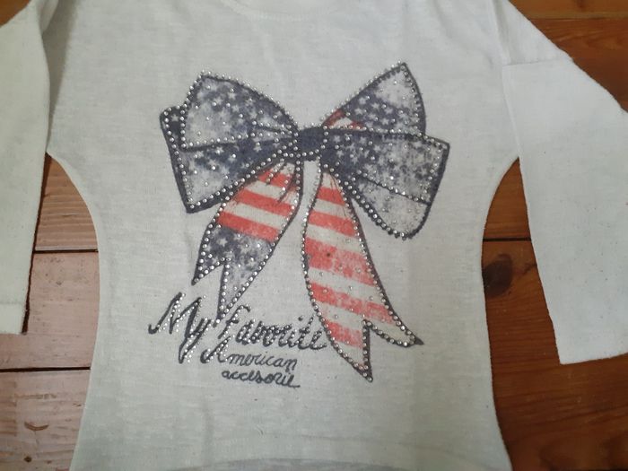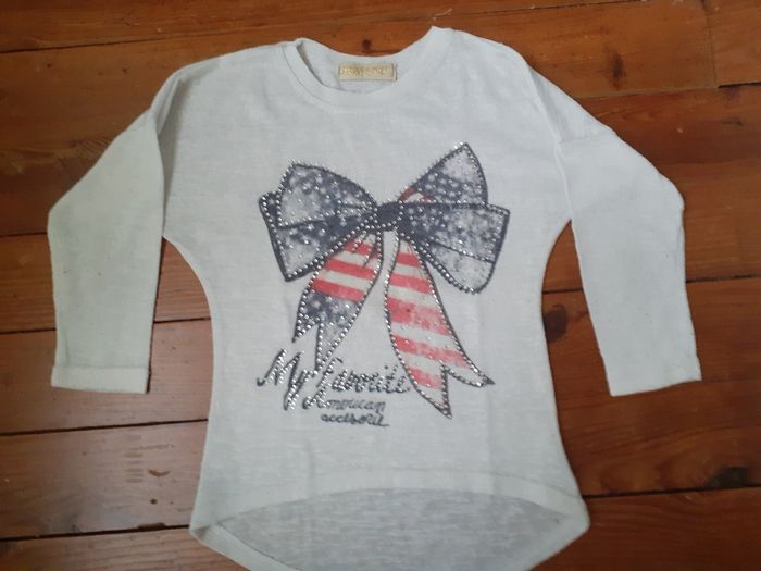 Pull blanc léger motif nœud gris et rouge 6 ans