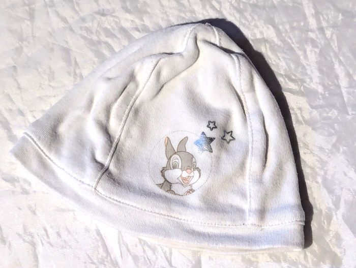 Bonnet Blanc Dessin Petit Lapin Etoiles Argentées Animal Vêtement Accessoire Petits Enfants Bébés - photo numéro 1