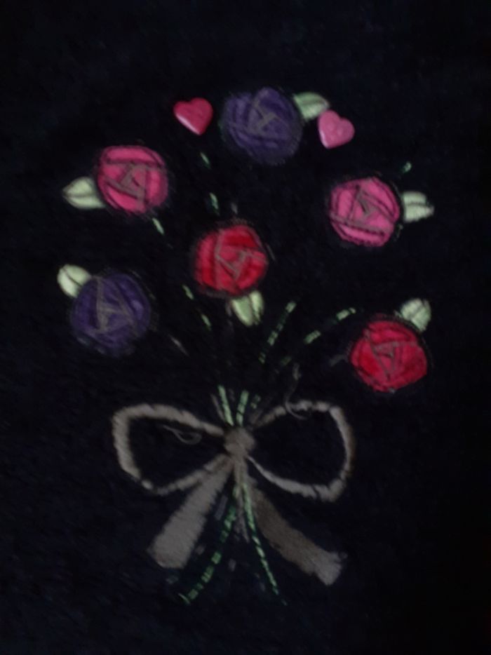 Pull noir bouclettes motif bouquet de fleurs 6 ans