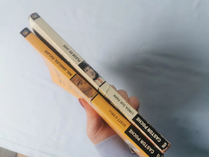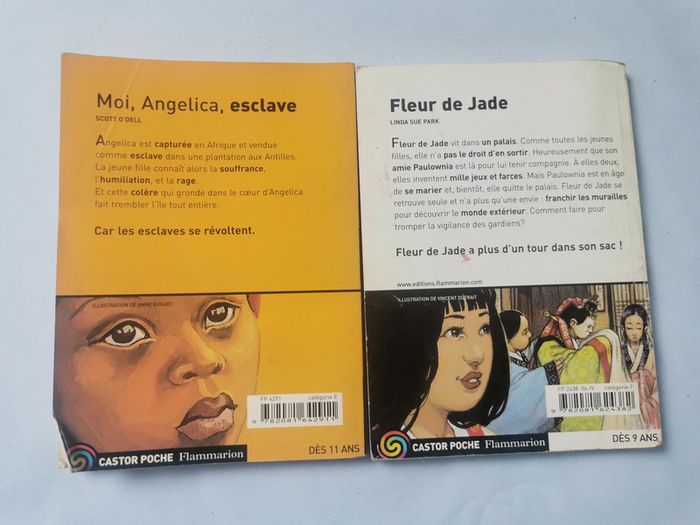 Lot de 2 livres Castor poche, en bon état général, un livre a des écritures à la première page, le second est taché sur le bord. Le lot n'est pas dissociable et comprend : - Moi, Angelica, esclave de Scott O'Dell, col. Voyage au temps de ... , 1998, 187p., dès 11 ans - Fleur de Jade de Linda Sue Park, col. Histoires d'ailleurs, 2004, 135p., dès 9 ans Poids du lot fait 319g. Pensez à faire des lots afin de bénéficier des remises que j'ai régulièrement sur ma page. #castorpoche #lotdelivres #livrepour9ans #livrepour11ans #scottodell #lindasuepark