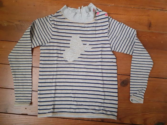 Sweet gris clair rayé marine et jaune motif papillon 6 ans
