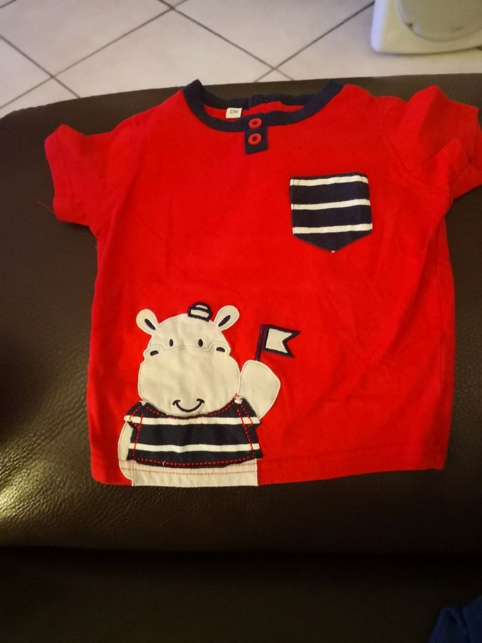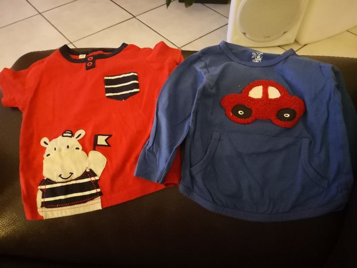 1 tee-shirt rouge manches courtes 1 tee-shirt bleu manches longues avec poches Excellent état