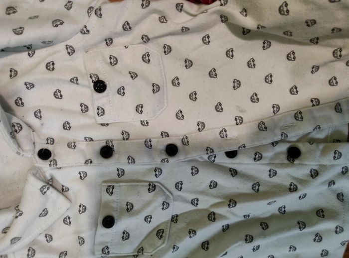 Lot état satisfaisant Salopette: trou sur une poche et pas les tirettes des fermetures Jean : genoux un peu décoloré voir vert Body: décoloration ou tâche j hésite Chemise:tâches #lotgarcon18mois