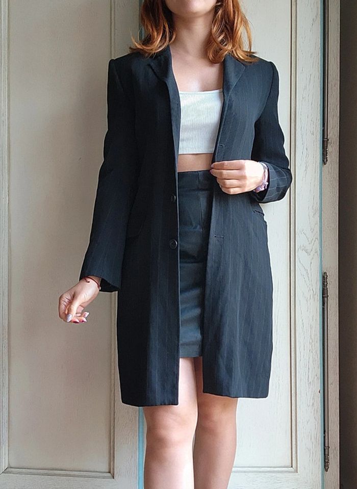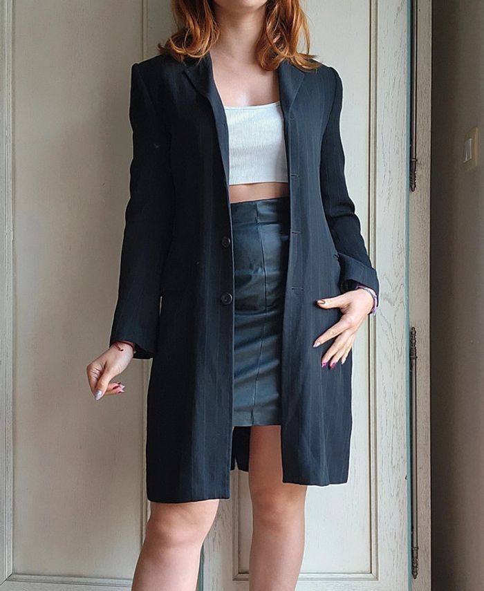 Veste noire blazer long noir rayé Caroll