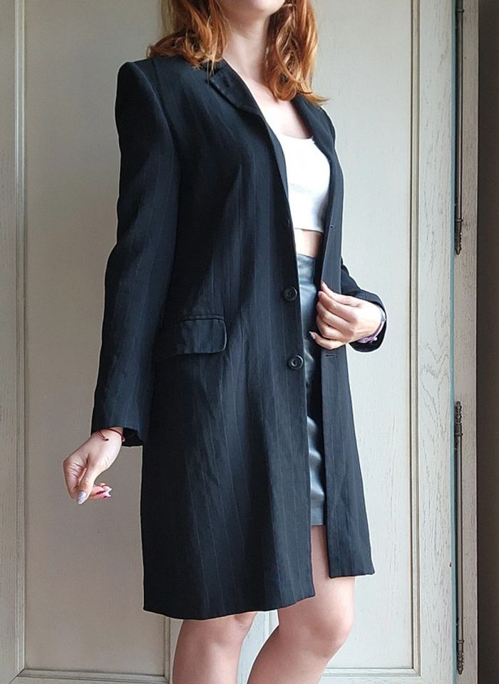 Veste noire blazer long noir rayé Caroll - photo numéro 1