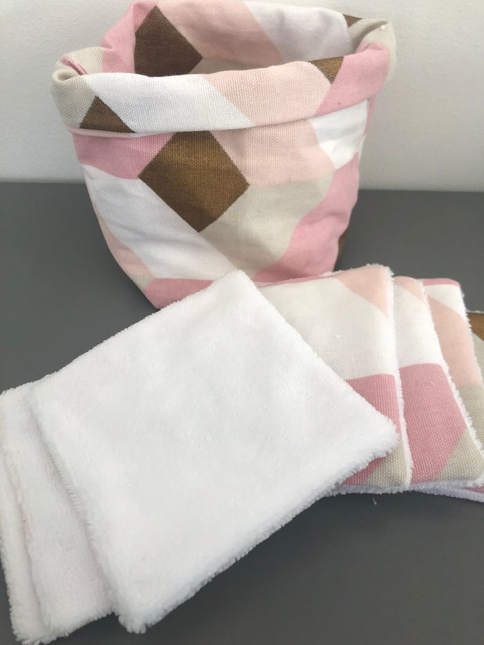 Lot de 7 lingettes eponge toute douce accompagné de son petit panier. Neuf, fait main. 4 dispos
