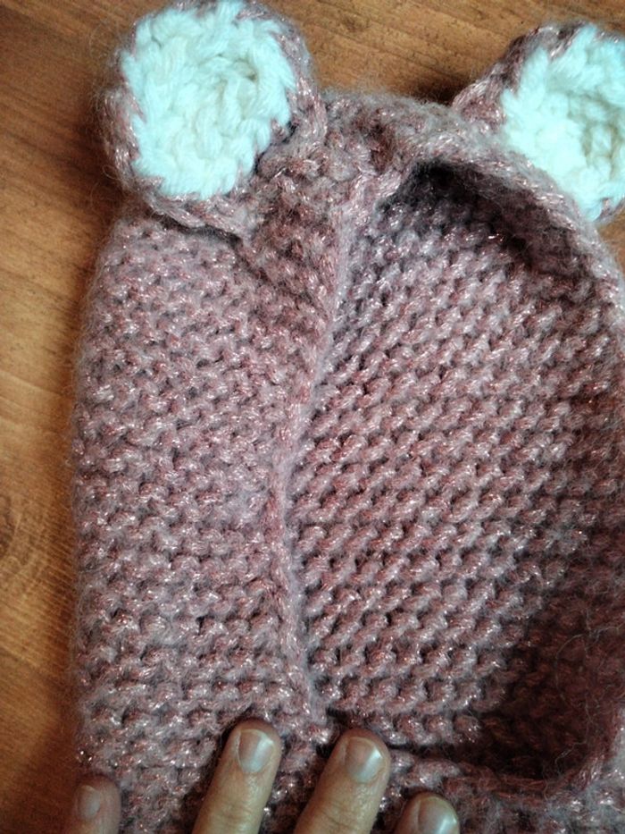 Fait maison Jamais portée Laine rose poudré avec fil irisé Petites oreilles d'ours 0-12 mois #marieb44260accessoiresenfant